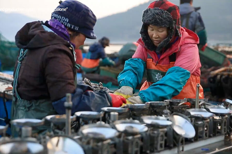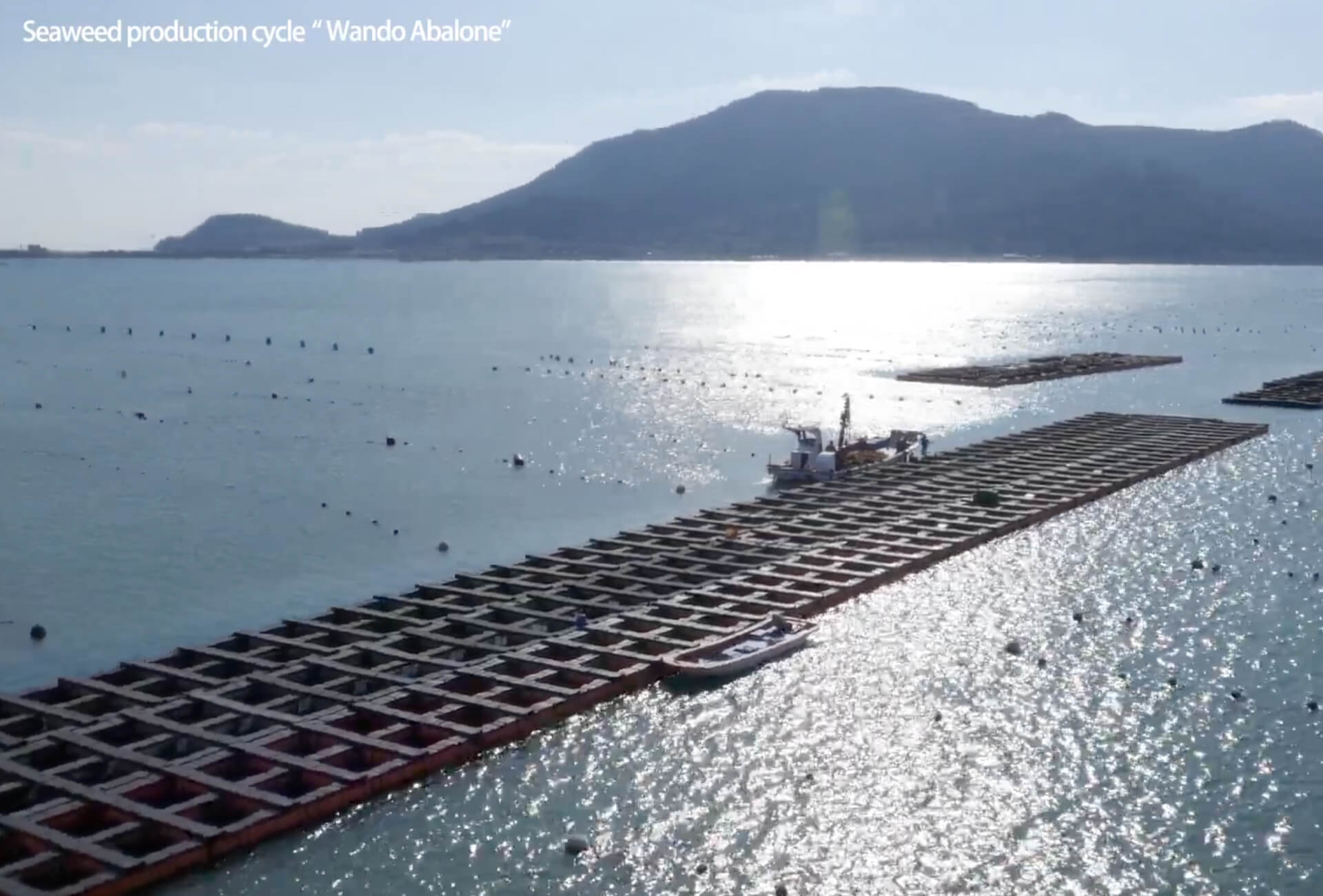 韓国南部の島々には多くのアワビ養殖棚があり、島民の多くがアワビ産業に従事しています。